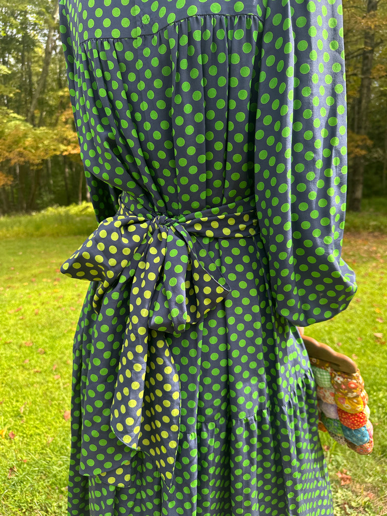 Late 70’s/ early 80’s 100% silk dress by Hanai Mori. Features silk sash to tie at waist or in hair. No flaws/ perfect vintage condition.